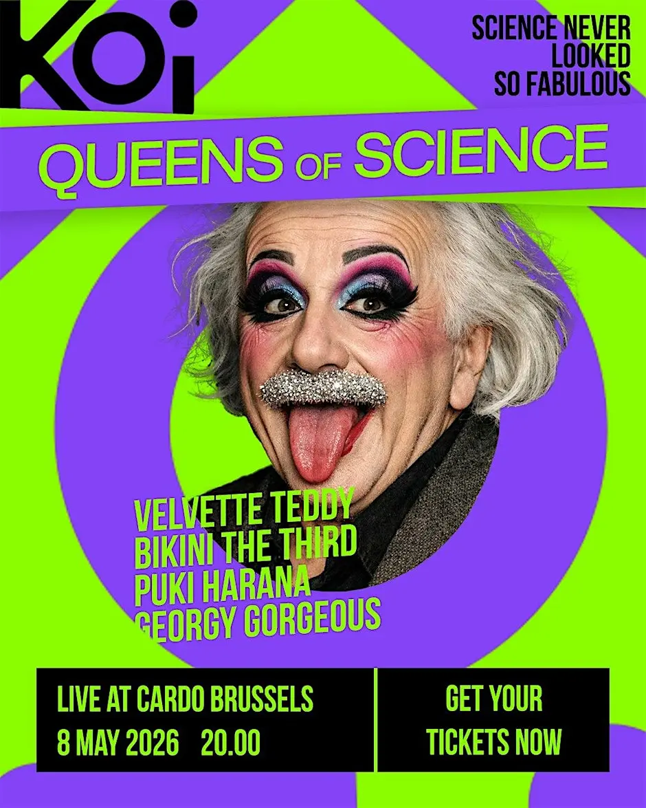 On May 8th, Queens of Science lands at Cardo Brussels with a bold, immersive show blending drag performance, storytelling, and scientific exploration. From the brain and AI to more unexpected topics, this unique experience reimagines science as culture, playful, inclusive, and thought-provoking. Expect an evening where art and research collide, inviting you to feel, question, and see science differently.