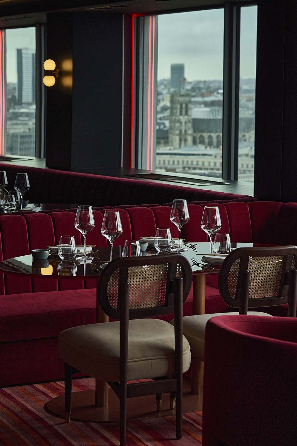 Akai invites you to experience a sexy and lively atmosphere that evolves throughout the day, reflecting the vibrant pulse of Brussels. Located in the city's heart, Akai offers a unique blend of Japanese and Mediterranean cuisine, crafted with bold flavours and innovative techniques. As day turns to night, the ambiance shifts to a sophisticated, intimate space, with stunning panoramic views of the city. Whether you're enjoying a quiet meal or celebrating with friends, Akai’s fusion of energy, comfort, and exceptional hospitality makes it the perfect destination for any occasion.