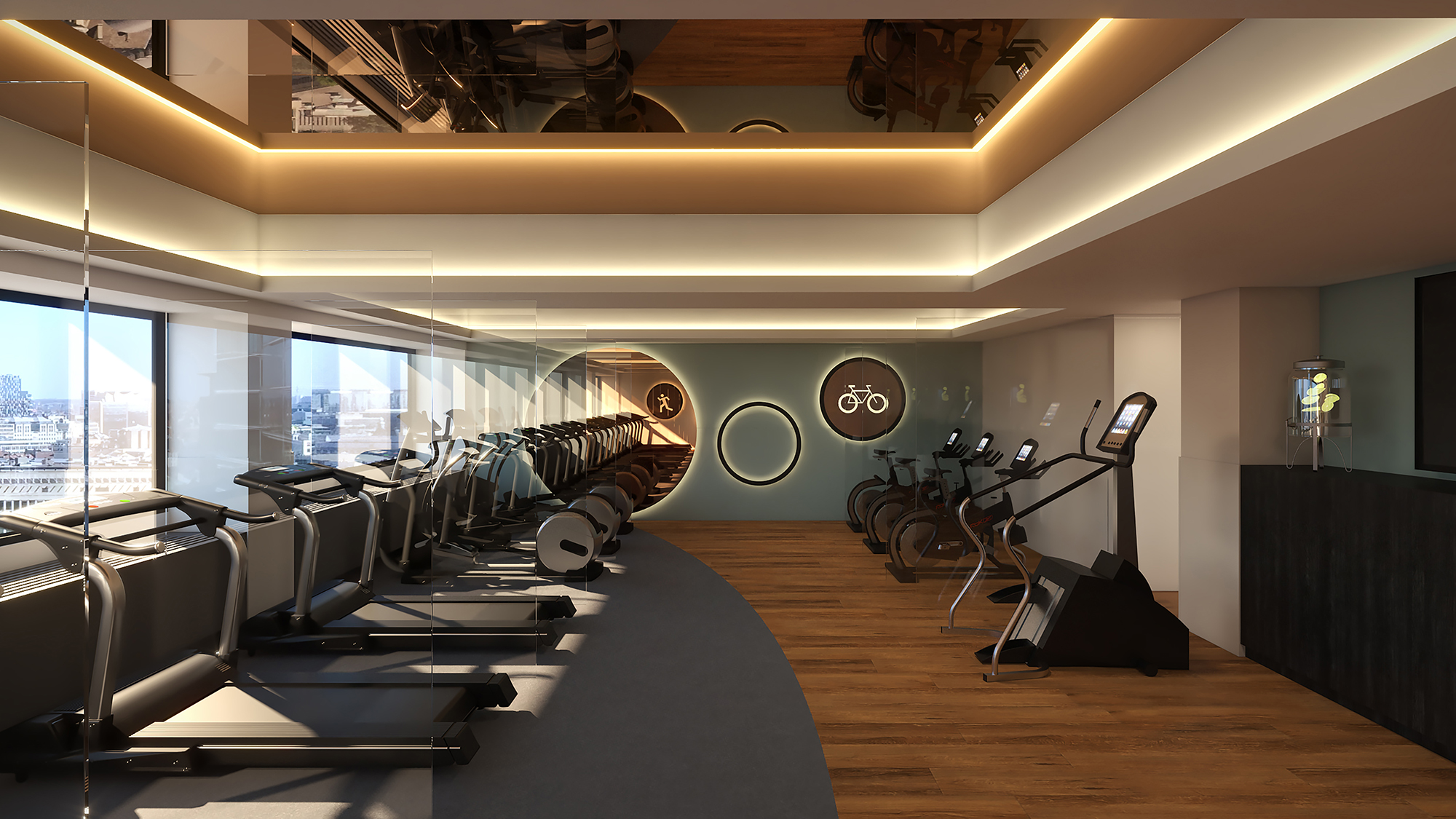 Our spacious gym has all you need for a full-throttle work out, with cardio and weight machines and bang up to date Technogym equipment, all located 25 floors high with simply stunning skyline views.